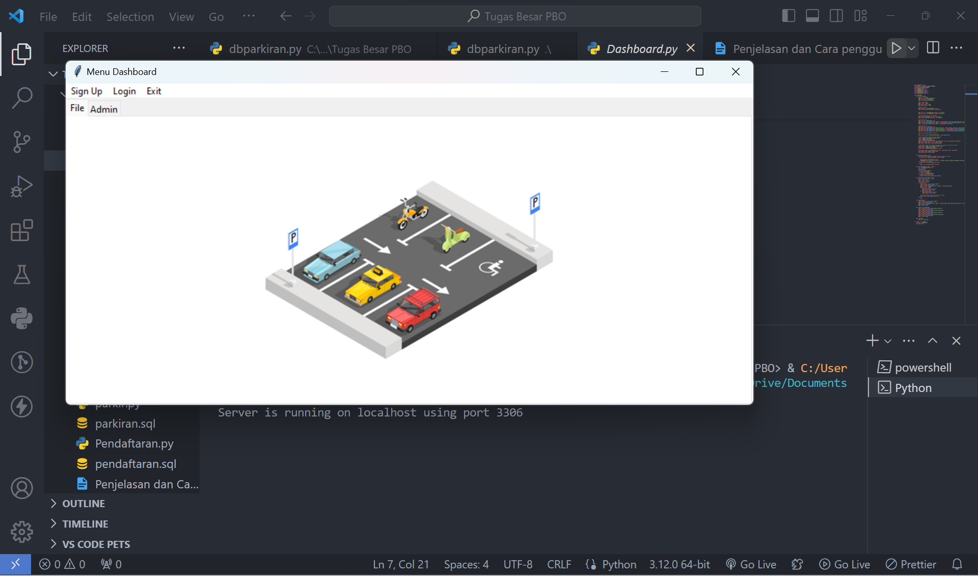 7.7 Tampilan Desain Sistem Aplikasi Parkiran