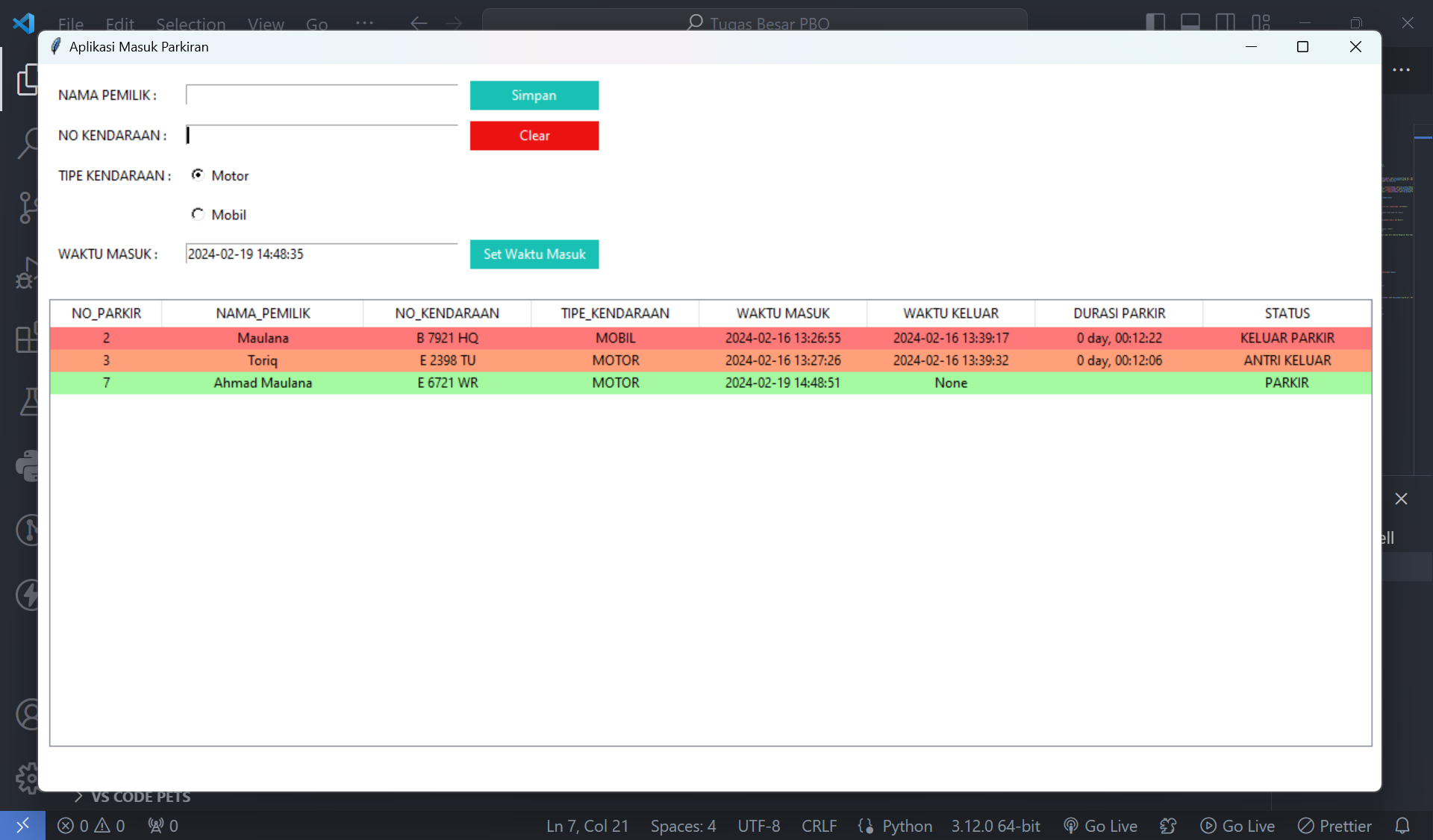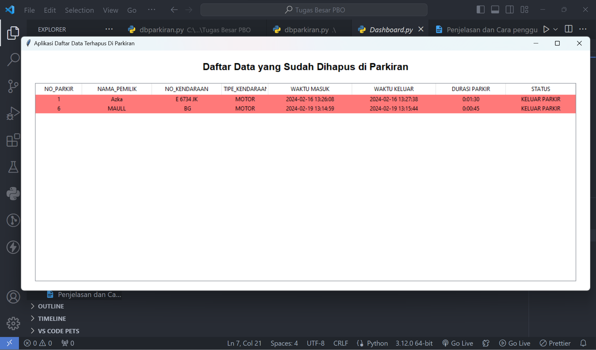6.Tampilan Menu Cek Data Parkiran