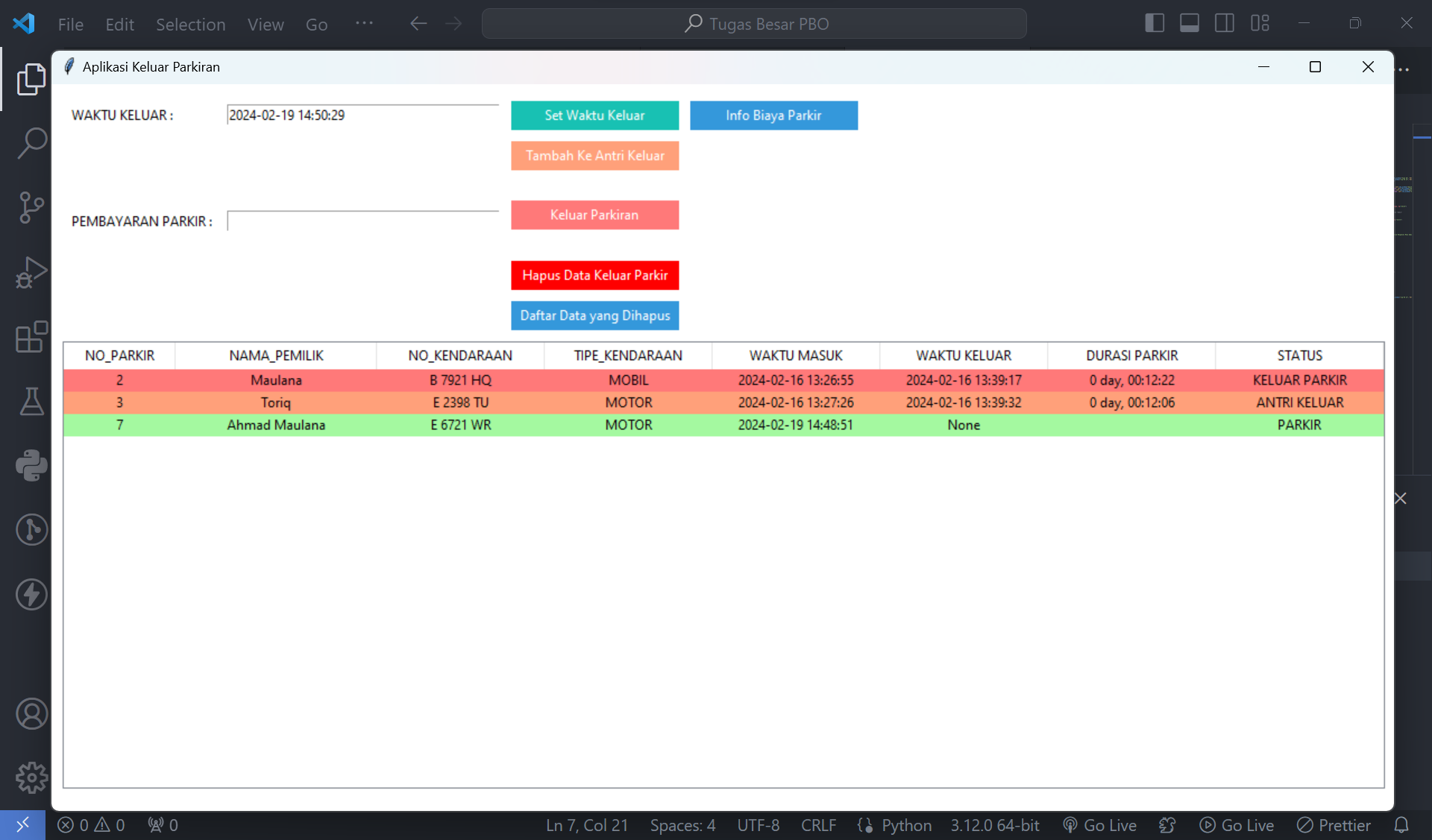 7.Tampilan Menu Keluar Parkiran